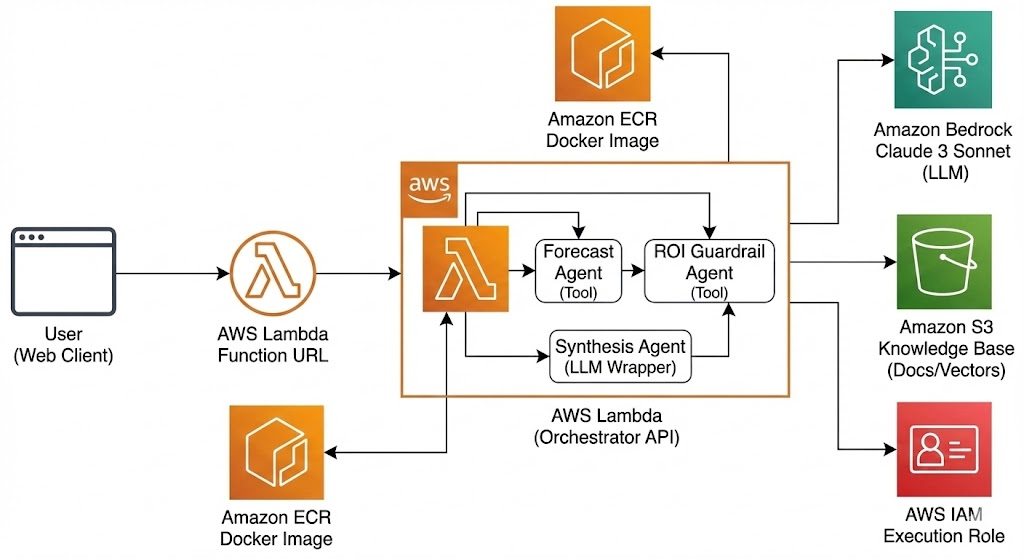 2. Synthesis Phase: The outputs of these tools are passed as context to the Strands Agent (Claude 3). The LLM’s only role is to synthesize the pre-calculated data into a coherent narrative and format the final JSON response.